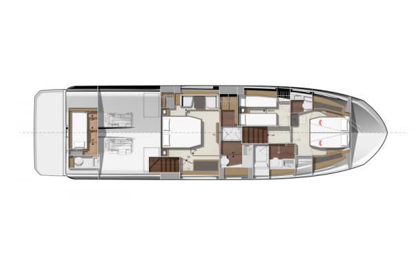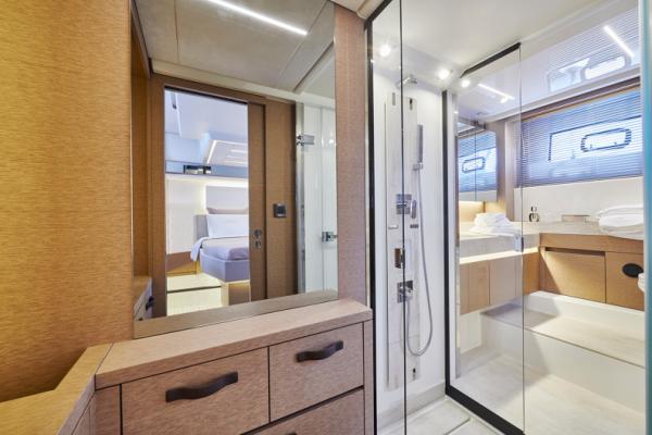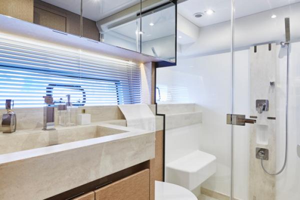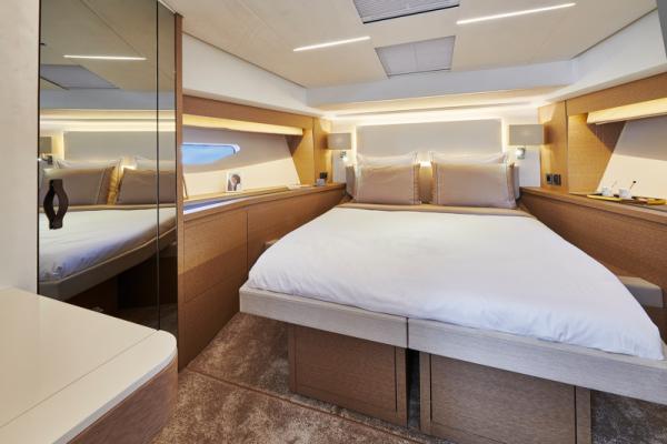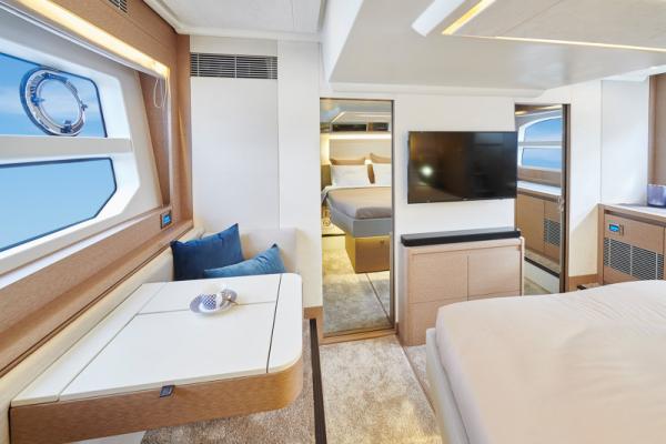 Důraz na detail je tím, co odlišuje PRESTIGE 590 od ostatních plavidel této kategorie. Zaoblené hrany nábytku přispívají k útulné a pohodlné atmosféře obývacího prostoru, který je protkán vytříbenou elegancí.
